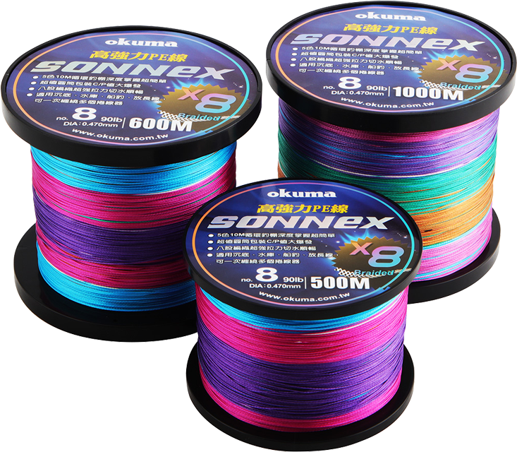 針對各種釣法所需,索尼PE線號數齊全,並備有四股、八股兩種編織工法讓釣友選擇最合用的線質。