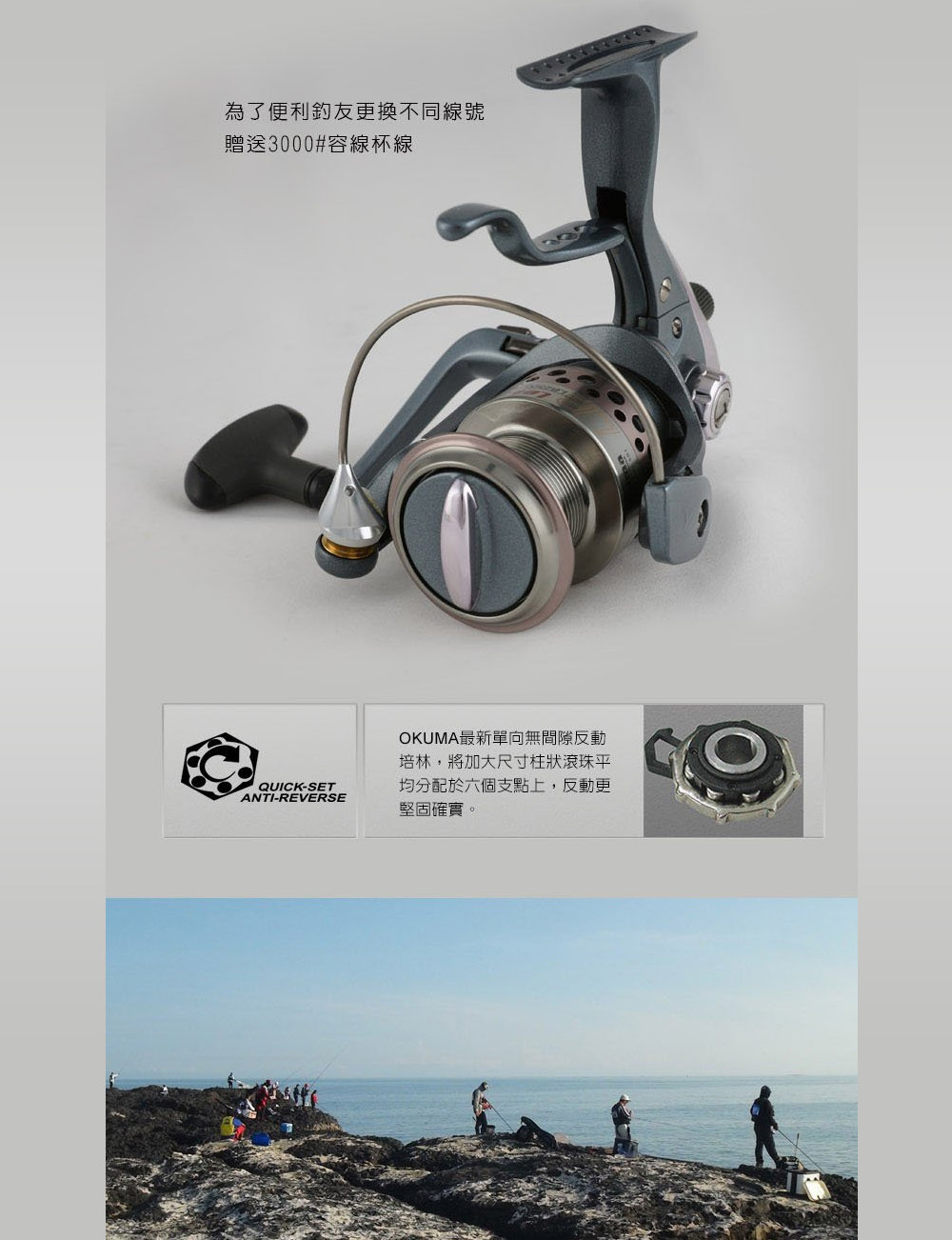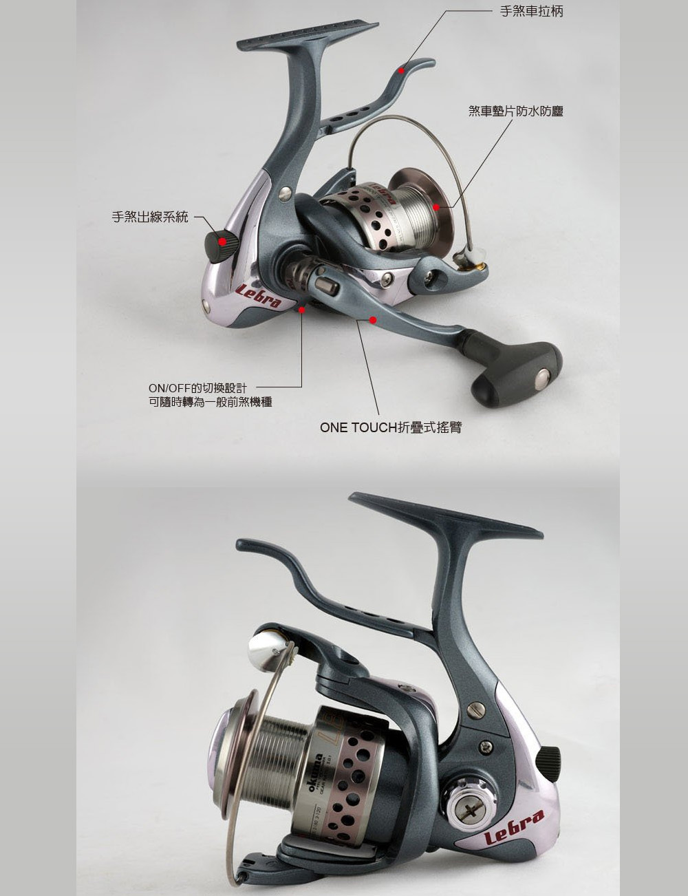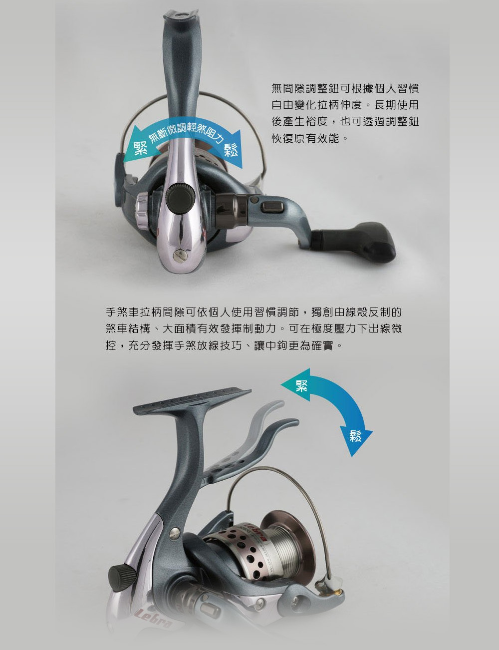 無段微調手煞車拉柄間隙(預調輕煞阻力)設計;有效防止線殼反轉造成線系操作困擾